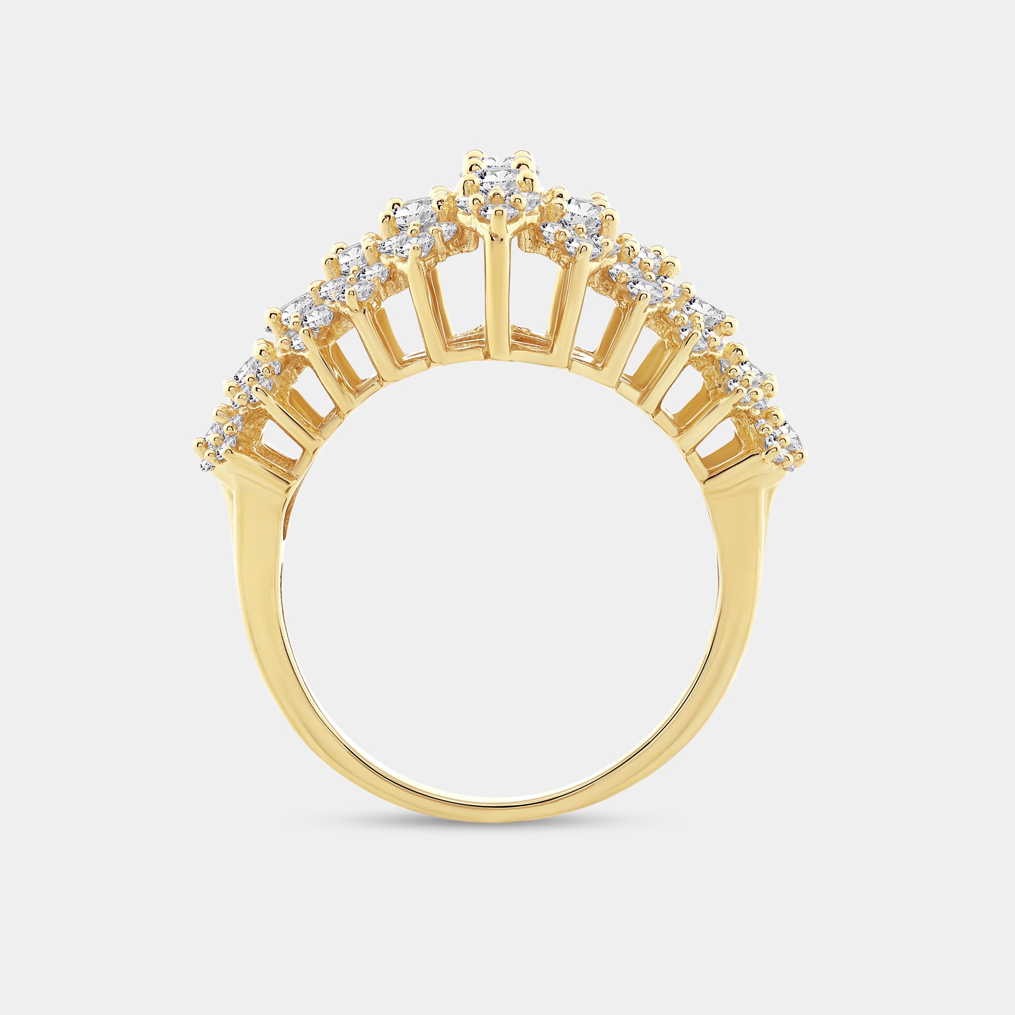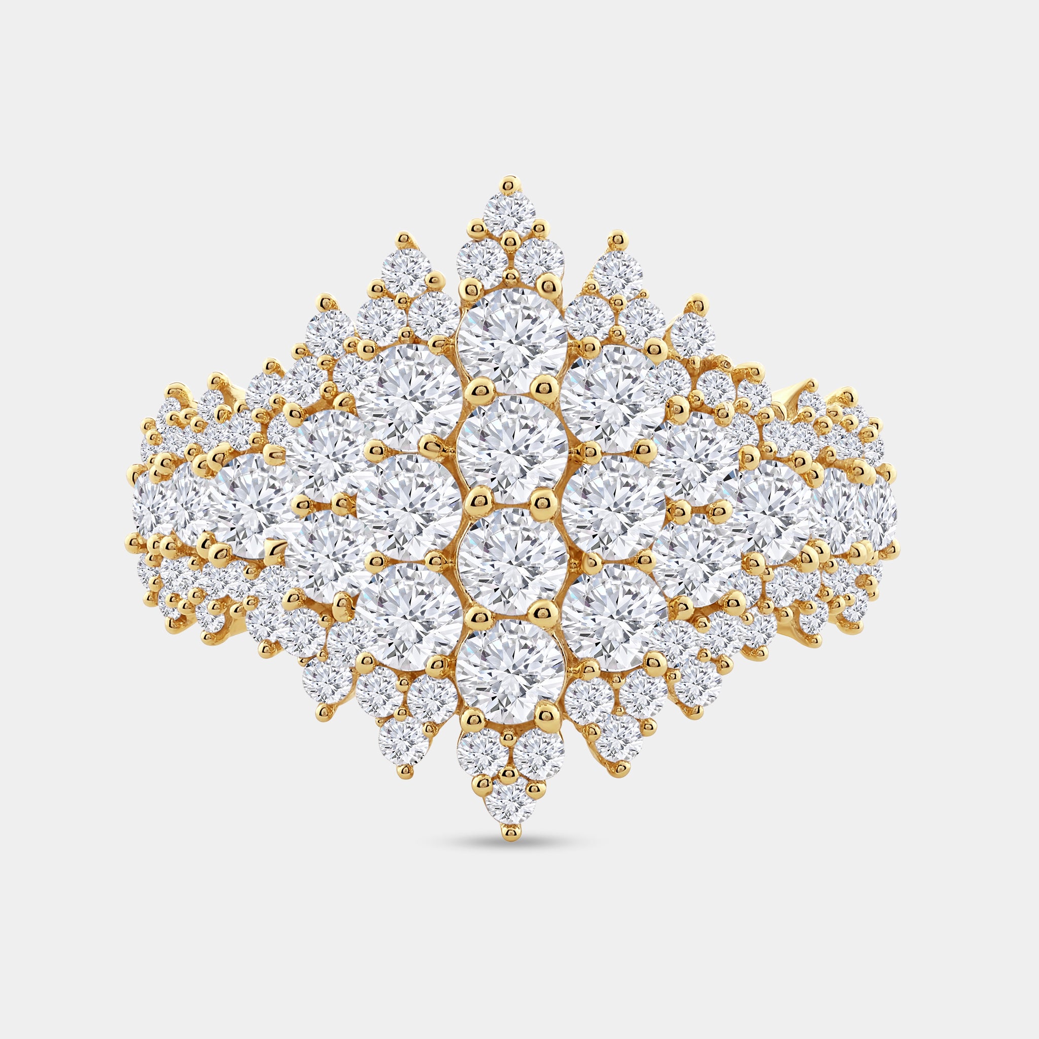 Playful yet sophisticated, our Gilded 3 Carat Lab-Grown Diamond Fancy Multi-Row Pyramid Fashion Ring are adornments made for the bold jewelry wearer, who isn't afraid to make an eye-catching statement. Choose from a wide variety of shapes: from the sweetness of a heart to the stunning shape of clusters and pyramid rings and inject your everyday look with a bold dash of sparkle.