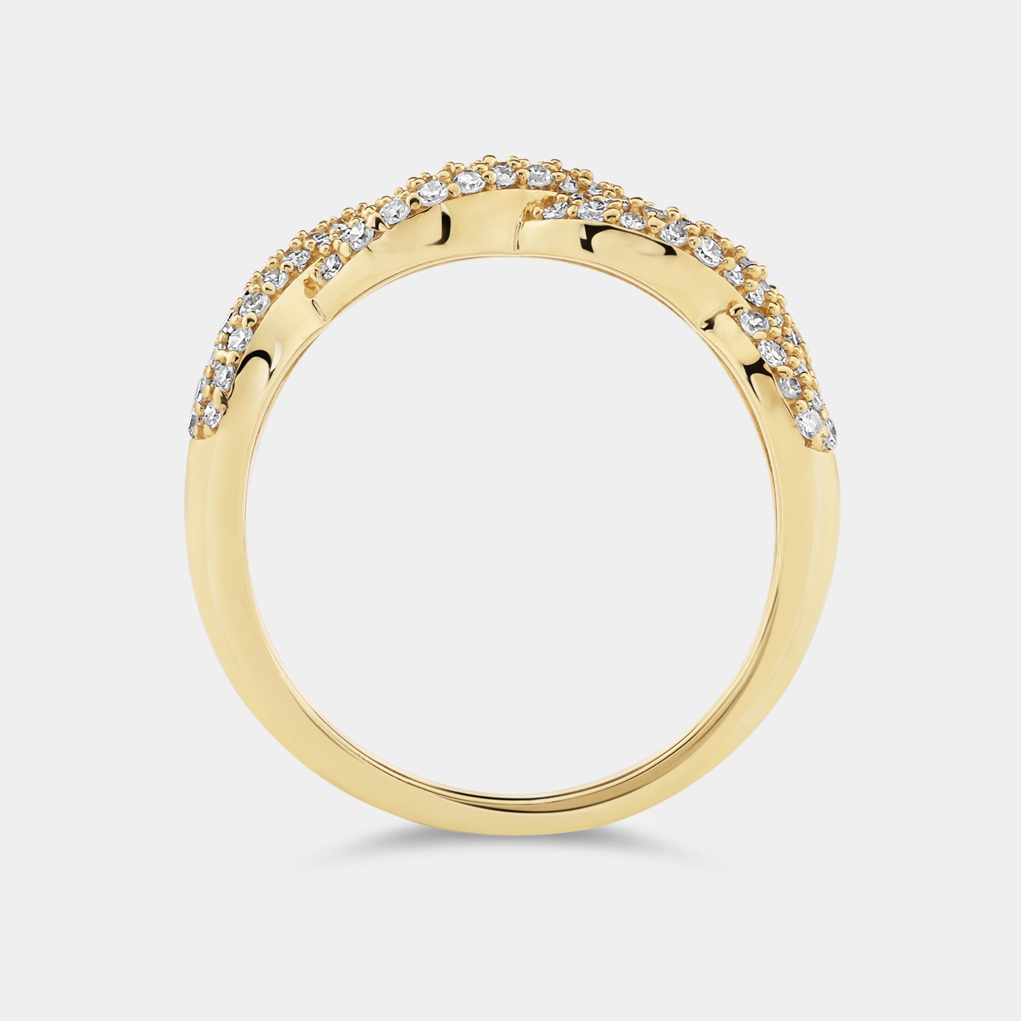 Our Gilded 1/2 Carat Lab-Grown Diamond Pavé Twist Anniversary Band is the perfect piece of jewelry to honor the eternal bond shared between you and your life partner. Weddings, anniversaries, graduations, or just a token of appreciation for a loved one, these bands are made to be worn across all of life's major milestones.