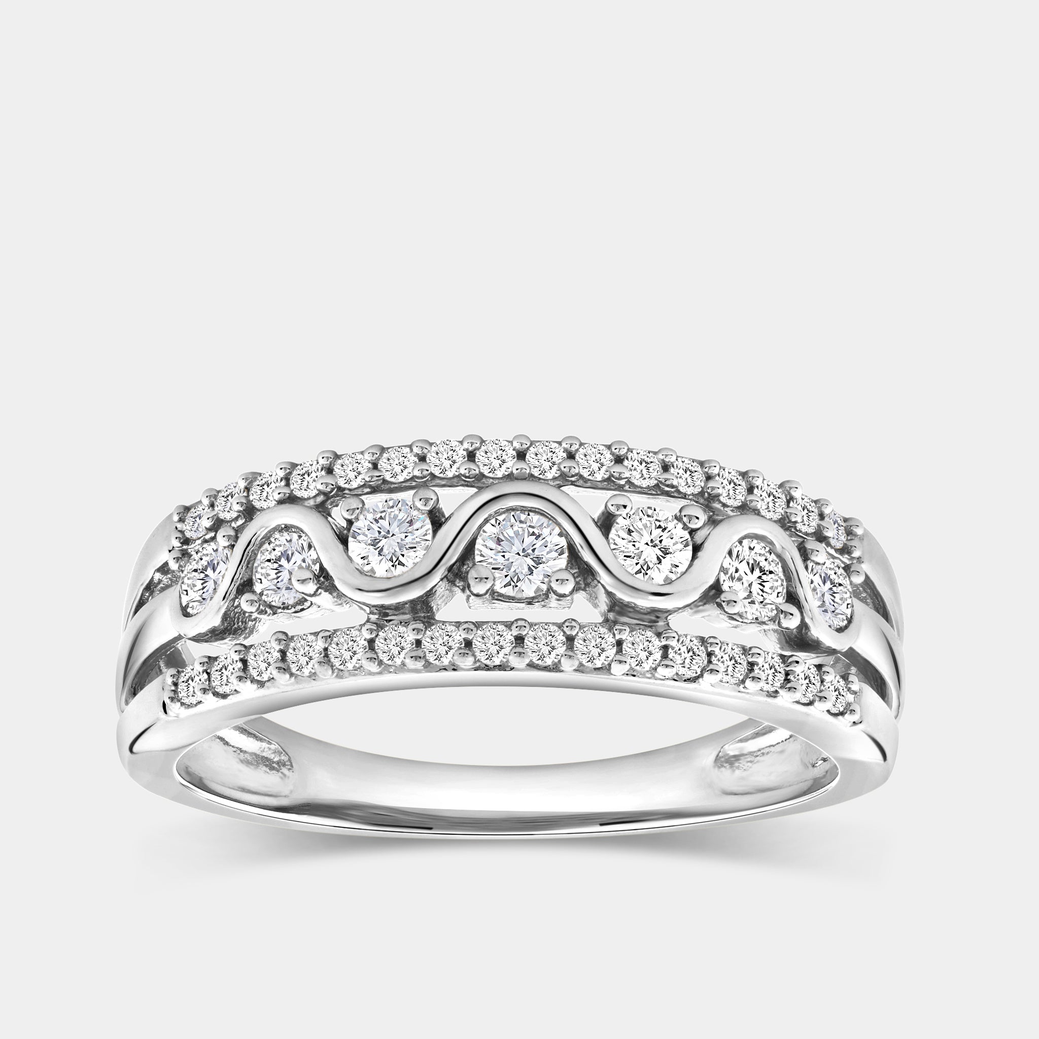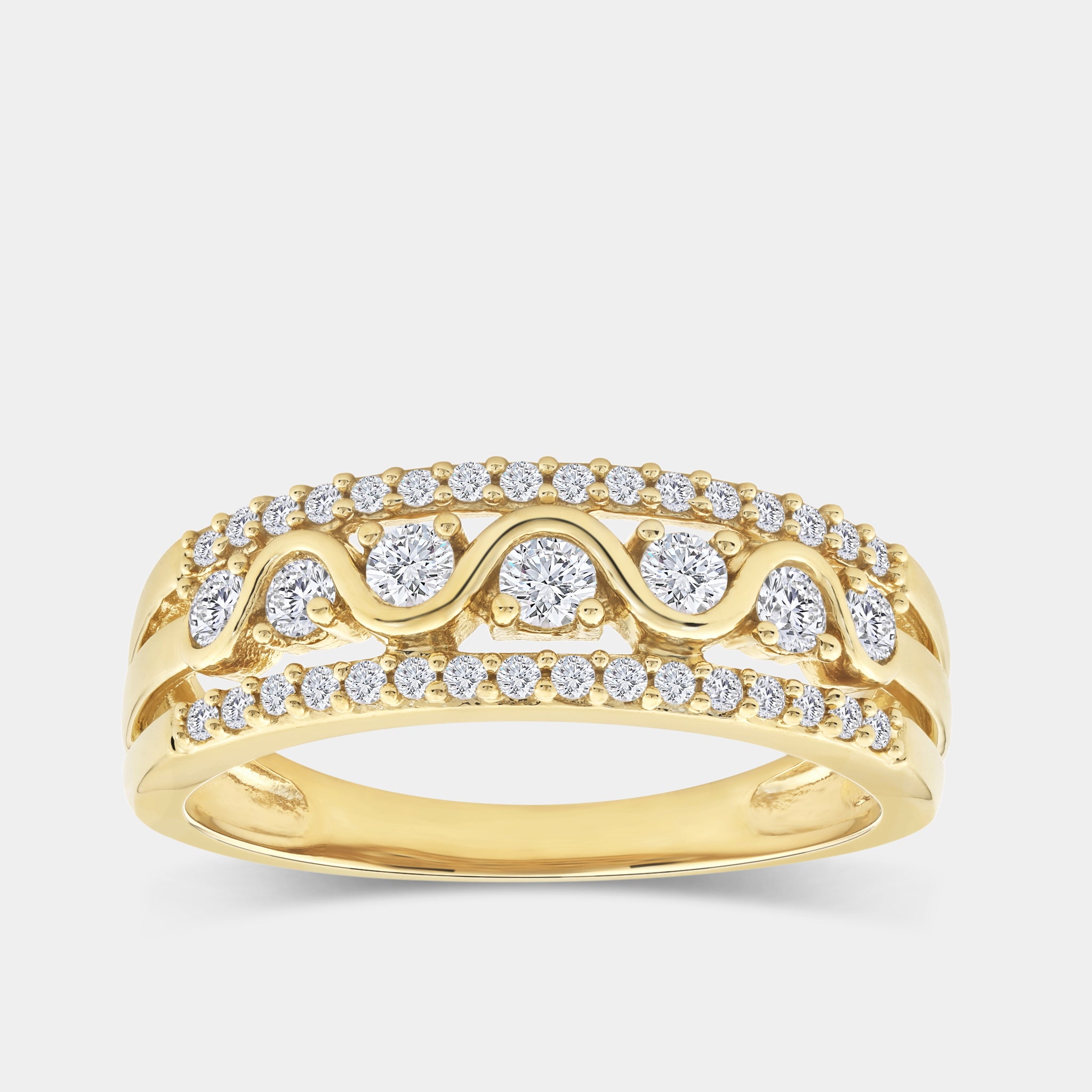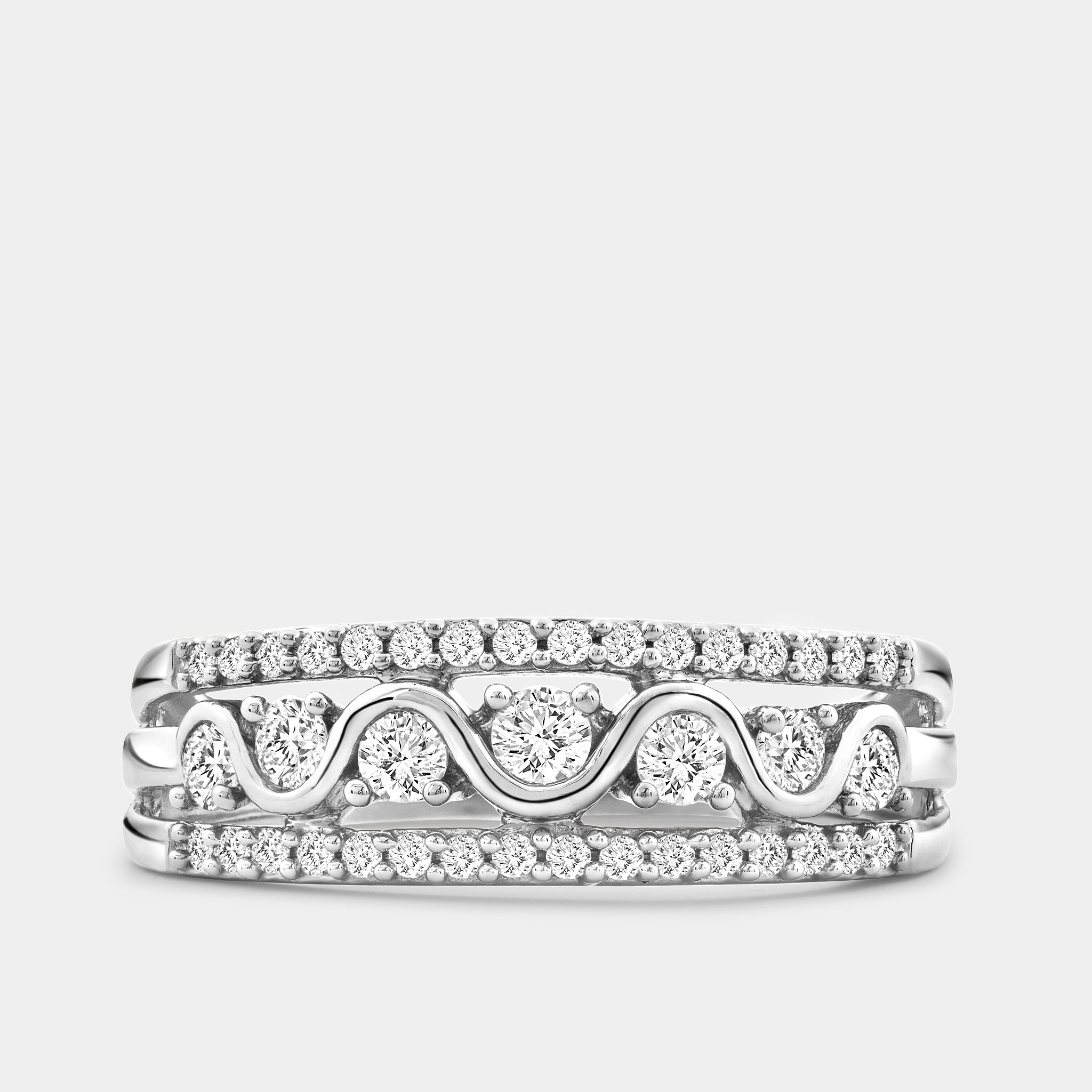 Our Gilded 1/2 Carat Lab-Grown Diamond Three-Row With High-Polish Wave Band is the perfect piece of jewelry to honor the eternal bond shared between you and your life partner. Weddings, anniversaries, graduations, or just a token of appreciation for a loved one, these bands are made to be worn across all of life's major milestones.