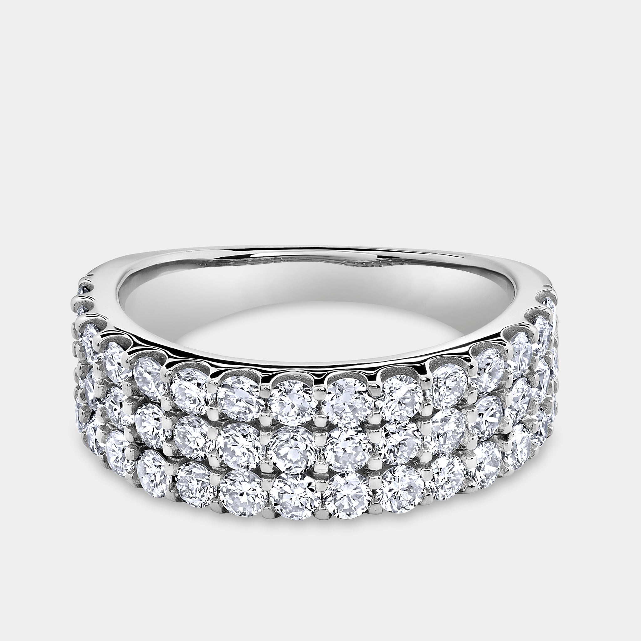 Our Gilded 1 and 1/2 Carat Lab-Grown Diamond Three Row U-Cut Anniversary Band is the perfect piece of jewelry to honor the eternal bond shared between you and your life partner. Weddings, anniversaries, graduations, or just a token of appreciation for a loved one, these bands are made to be worn across all of life's major milestones.
