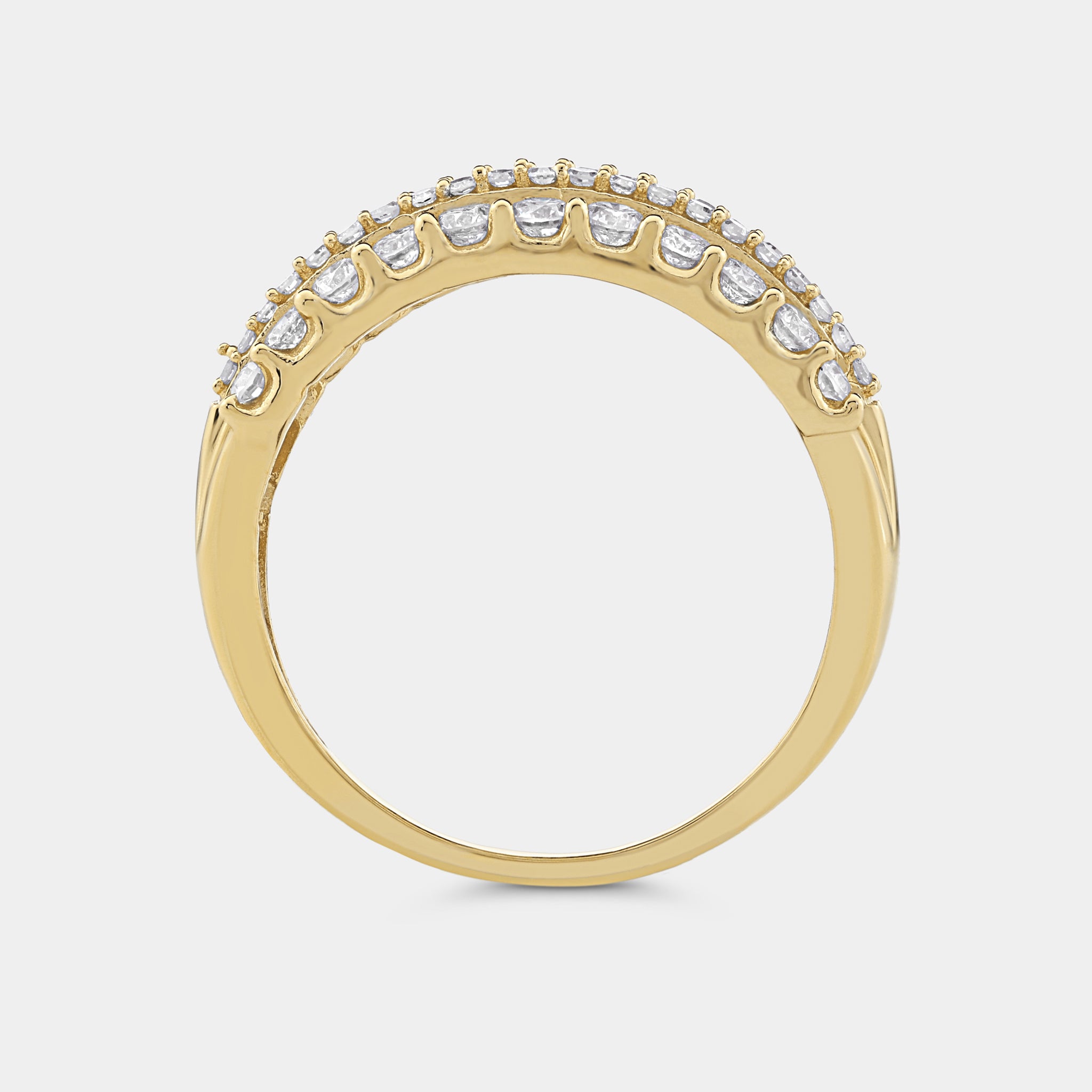 Our Gilded 1 Carat Lab-Grown Diamond Five-Row Boat-Shaped Anniversary Band is the perfect piece of jewelry to honor the eternal bond shared between you and your life partner. Weddings, anniversaries, graduations, or just a token of appreciation for a loved one, these bands are made to be worn across all of life's major milestones.