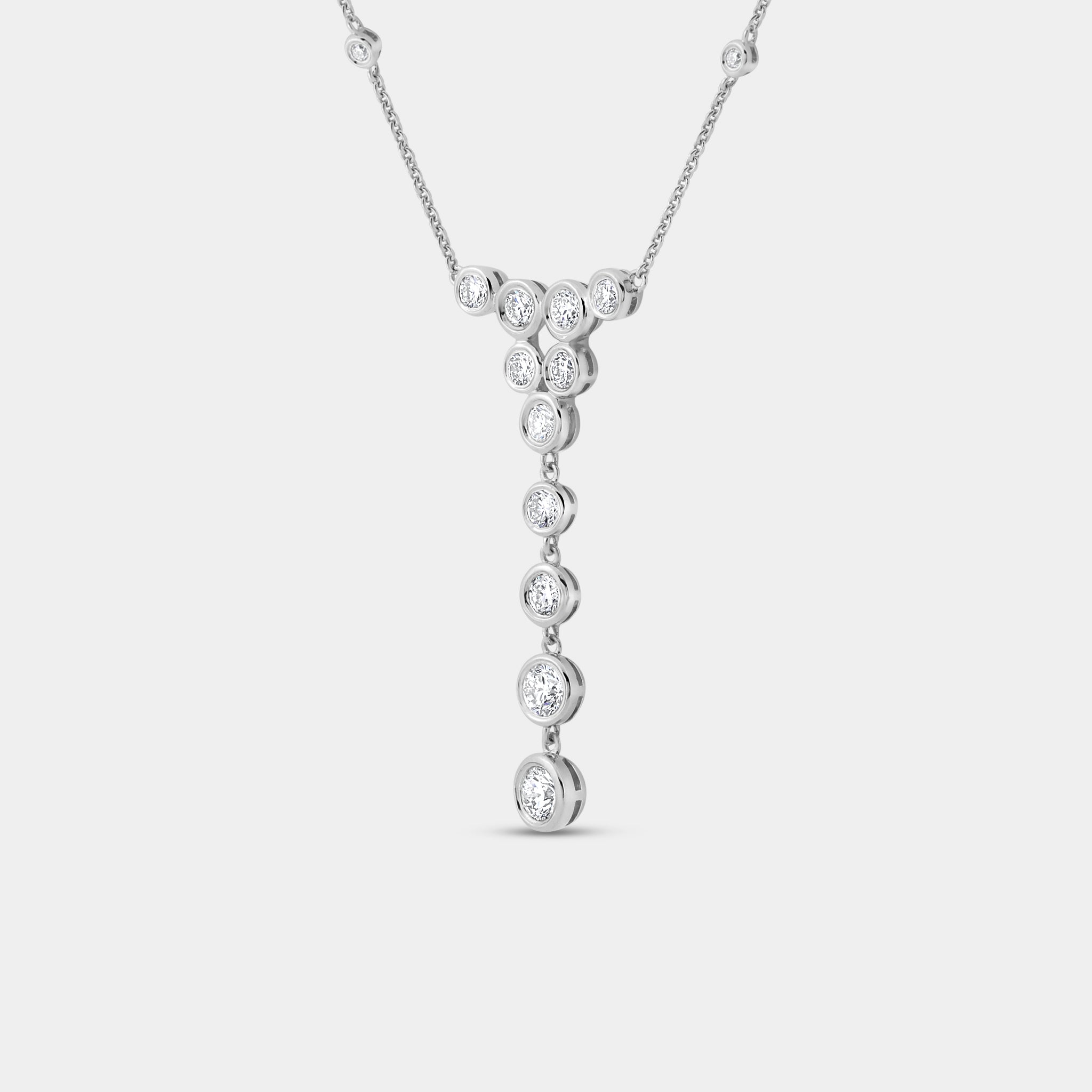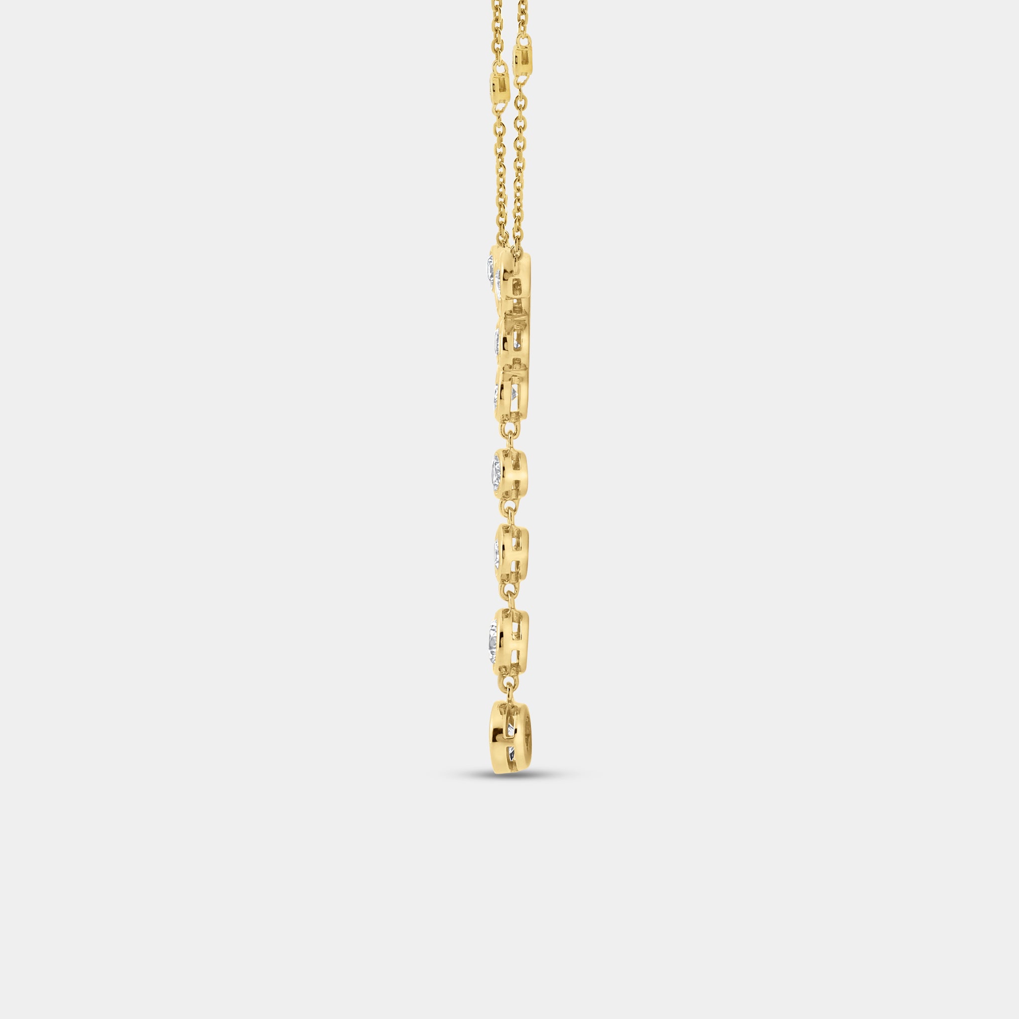 Exquisite design meets immaculate craftsmanship in our Gilded 1 and 1/4 Carat Lab-Grown Diamond Clustered Bezel-Set Necklace with Diamond Stations. A brilliantly modern piece that personifies clean contemporary elegance, the lab grown diamond shimmer with sharp clarity, and move with the wearer's movement, creating a fluid harmony of motion.