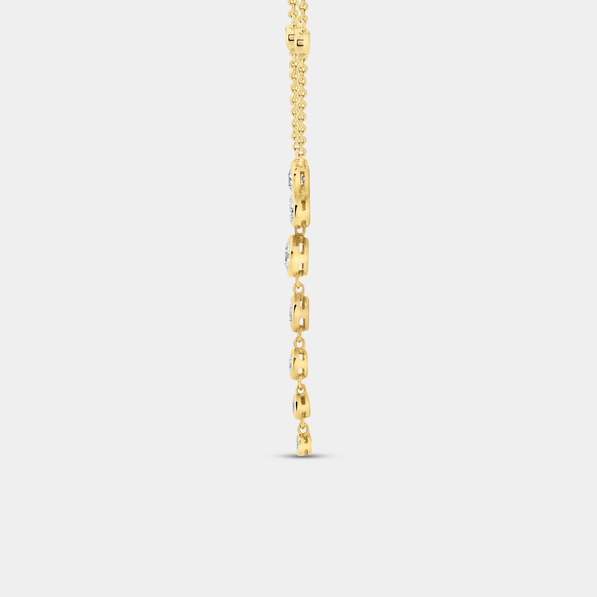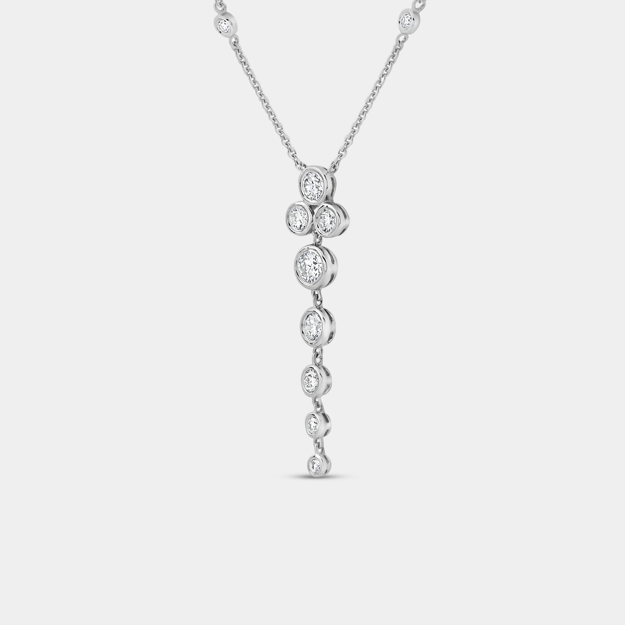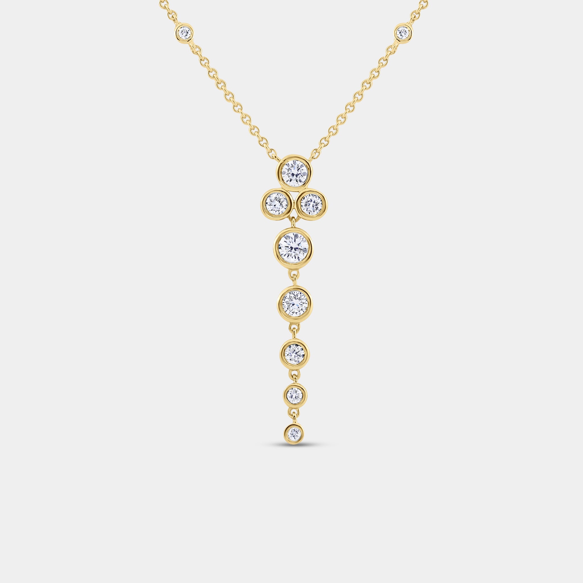 Exquisite design meets immaculate craftsmanship in our Gilded 1 Carat Lab-Grown Diamond Bezel-Set Necklace with Diamond Stations. A brilliantly modern piece that personifies clean contemporary elegance, the lab grown diamond shimmer with sharp clarity, and move with the wearer's movement, creating a fluid harmony of motion.
