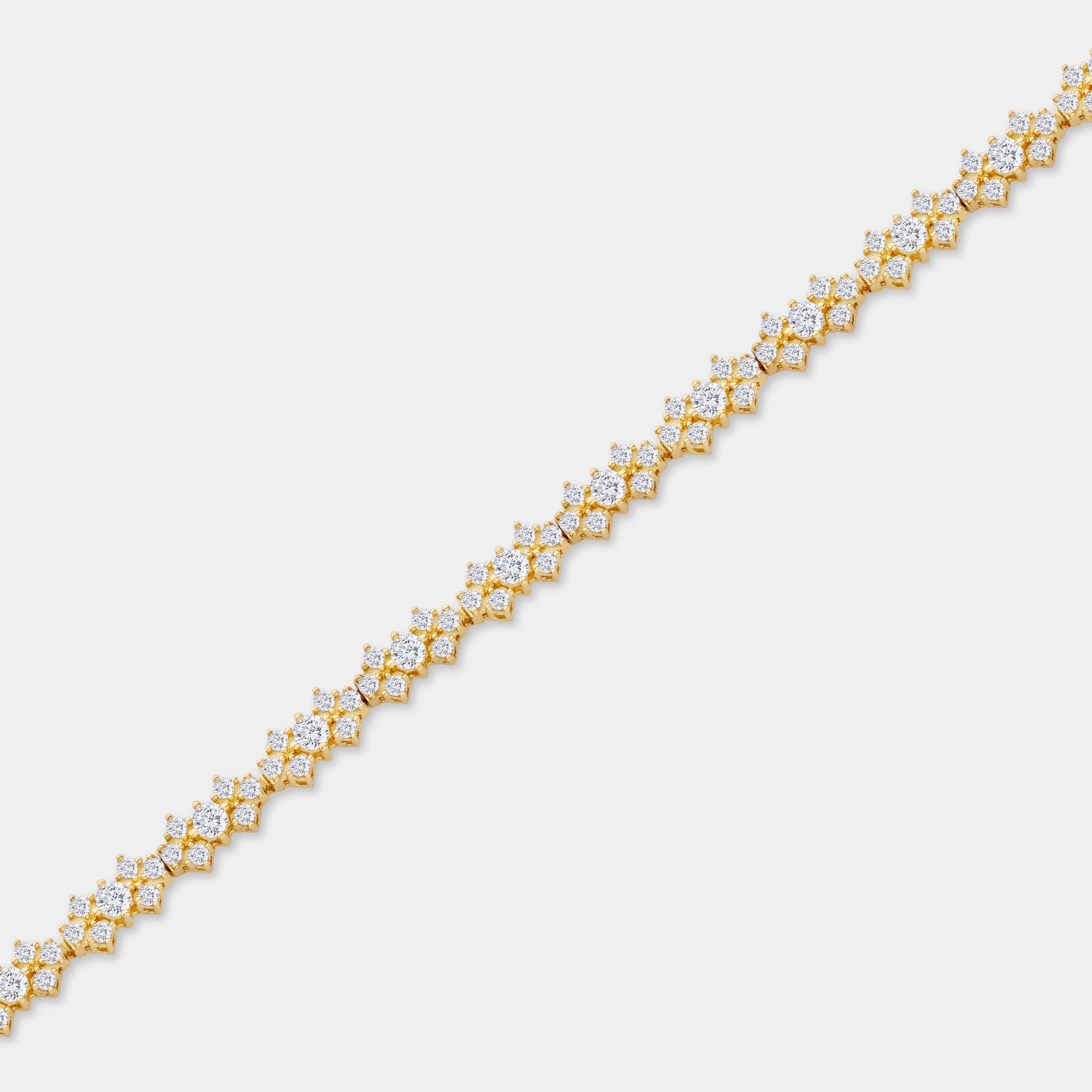 Understated luxury meets exquisite opulence in our Gilded 2 Carat Lab-Grown Diamond Fashion Bracelet with Kite-Shaped Composite Motifs. A stunning piece that shimmers with every movement and embodies sheer, unadulterated glamour. Designed to captivate, the round-shaped diamond create a halo of dazzling sparkle wherever you go, and it has a timeless finish that hugs your wrist in a quiet harmony of luxury.
